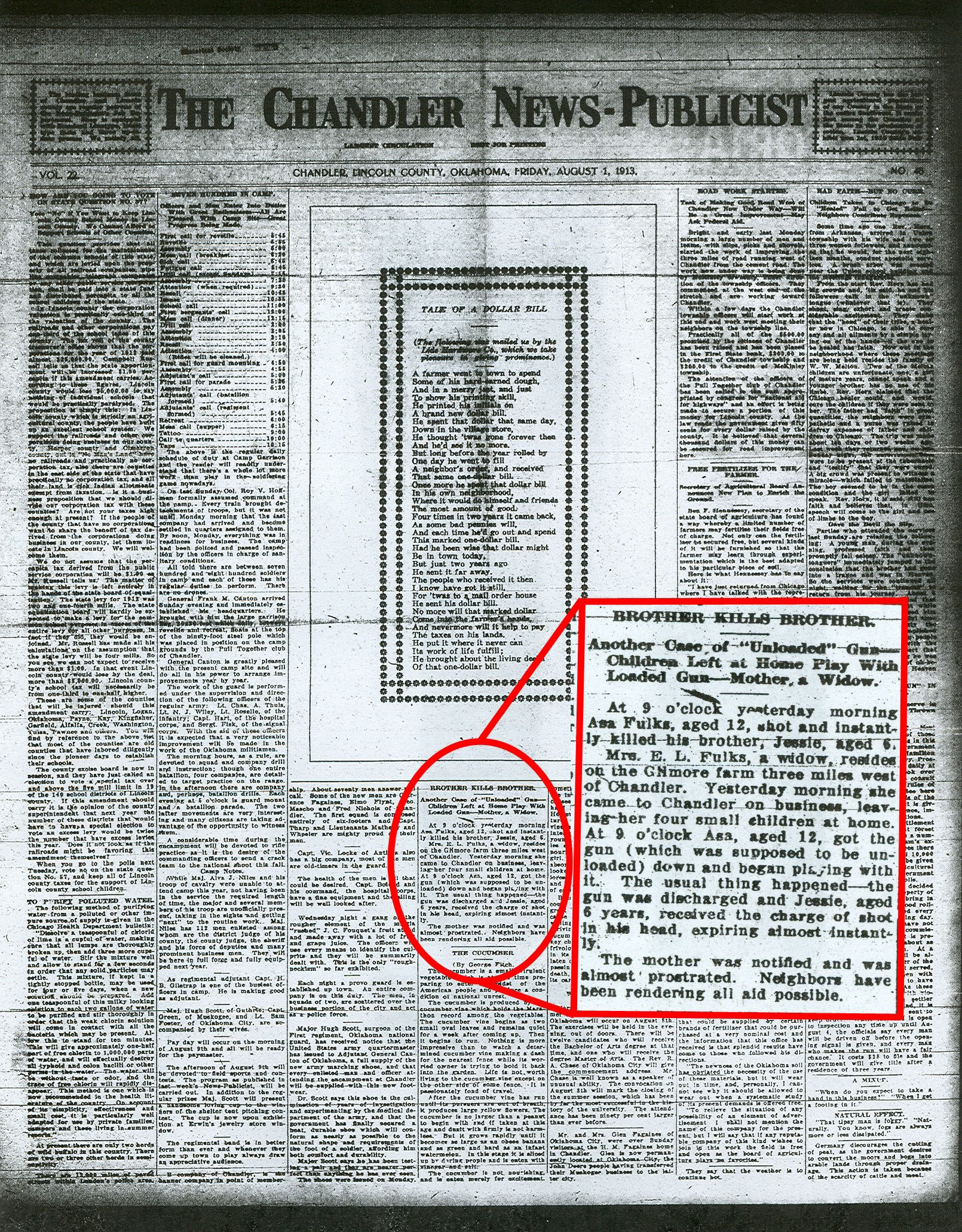 July 1913 in Chandler, Oklahoma; Gilmore farm 3 miles west of town