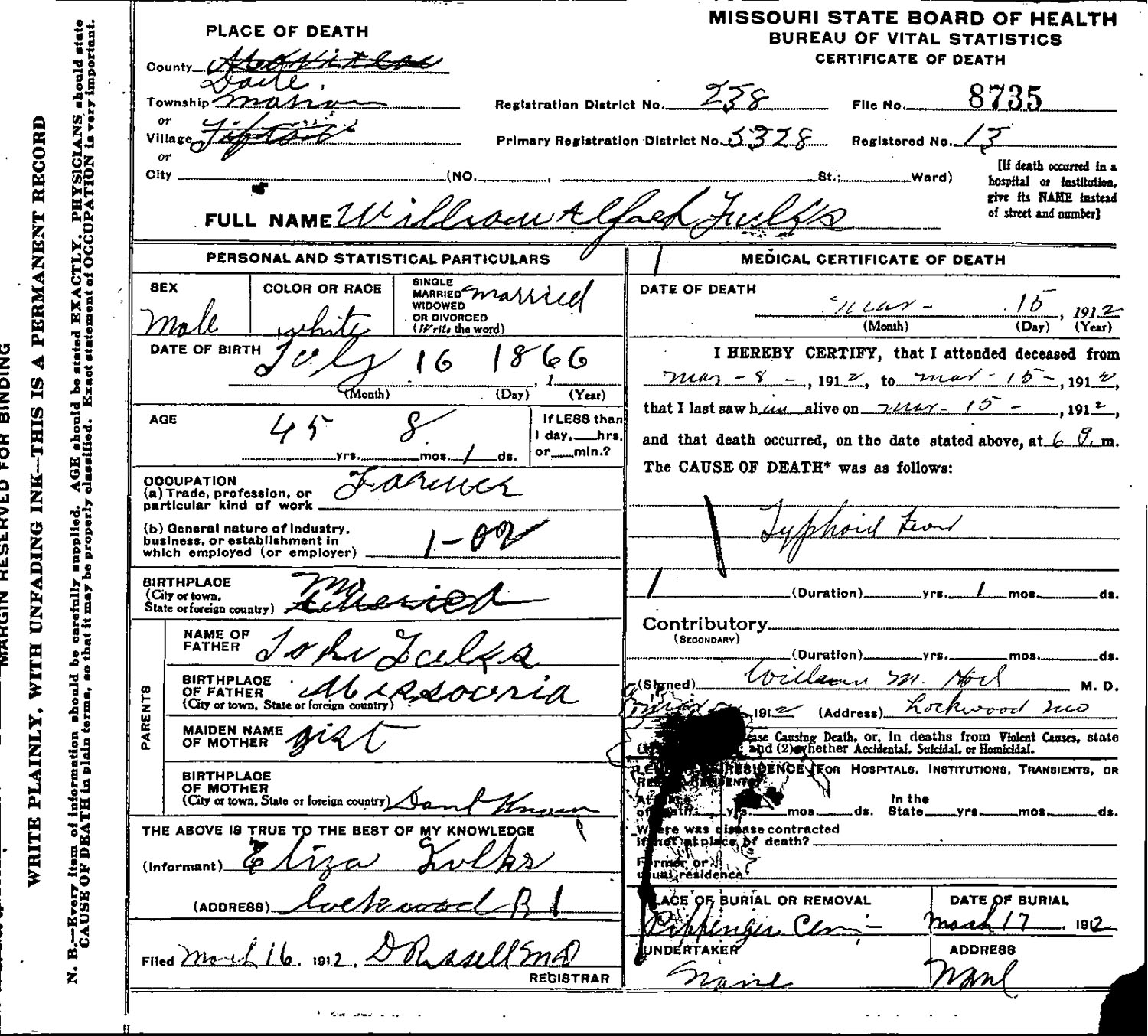 Between March 1912 and JUL 1913; From Missouri to Oklahoma in a covered wagon