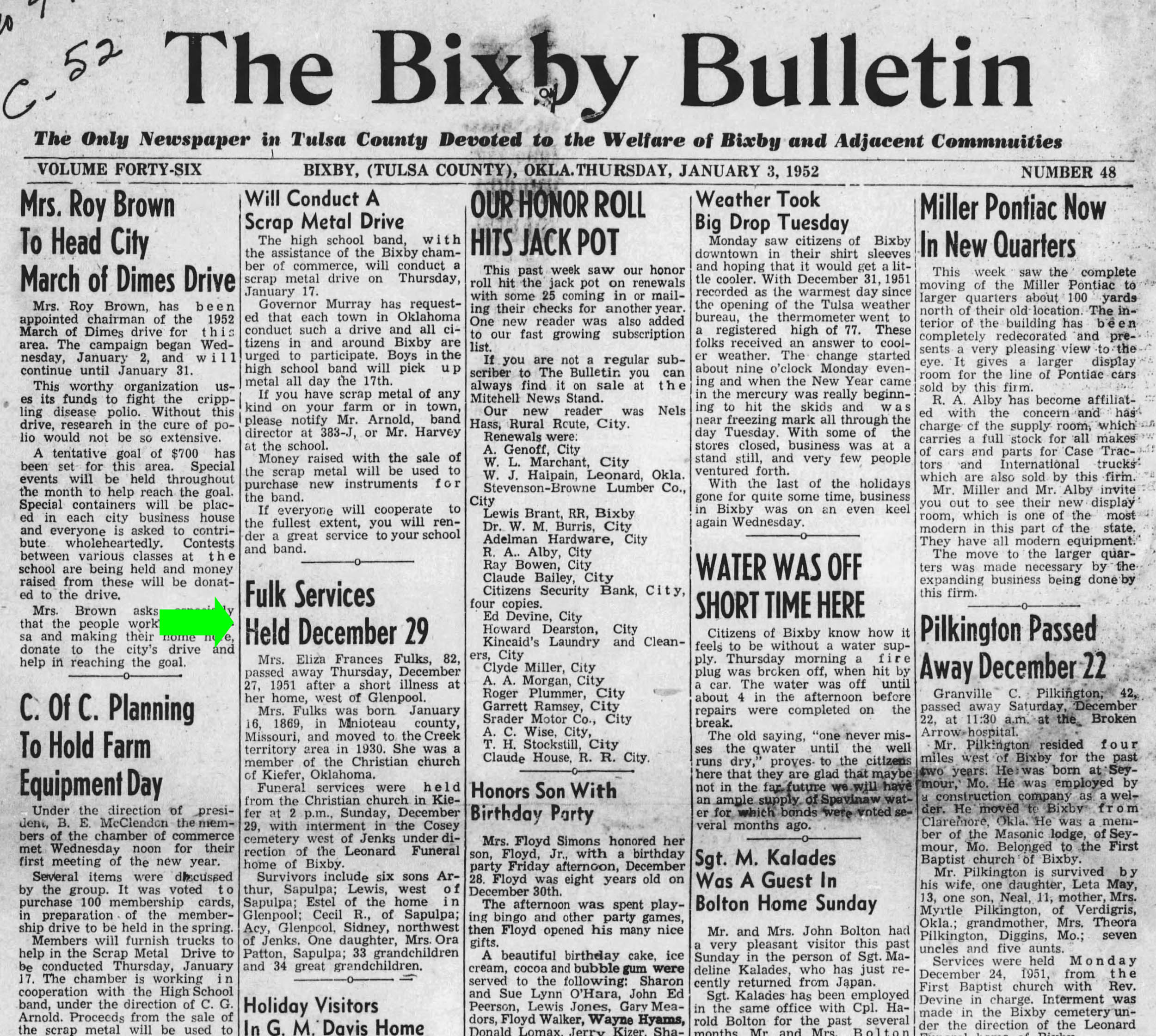 December 1951 in Sapulpa, Oklahoma; Route 2