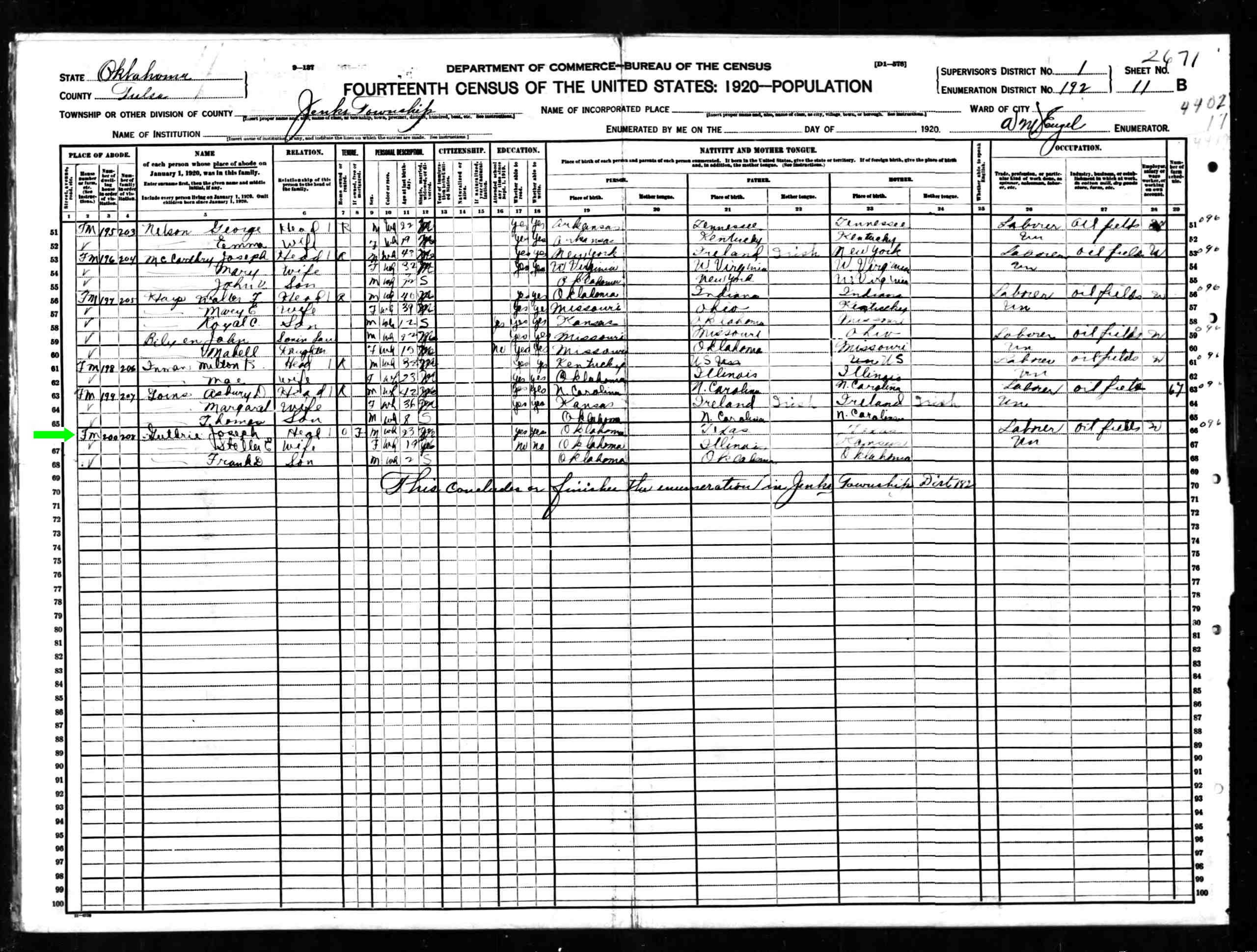 1900 - Broken Arrow, Oklahoma