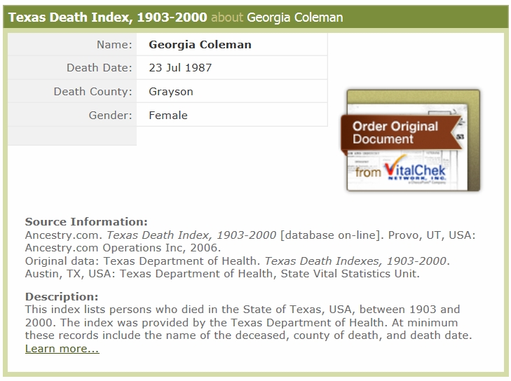 July 1987 in Whitesboro, Texas; Oak Wood Cemetery