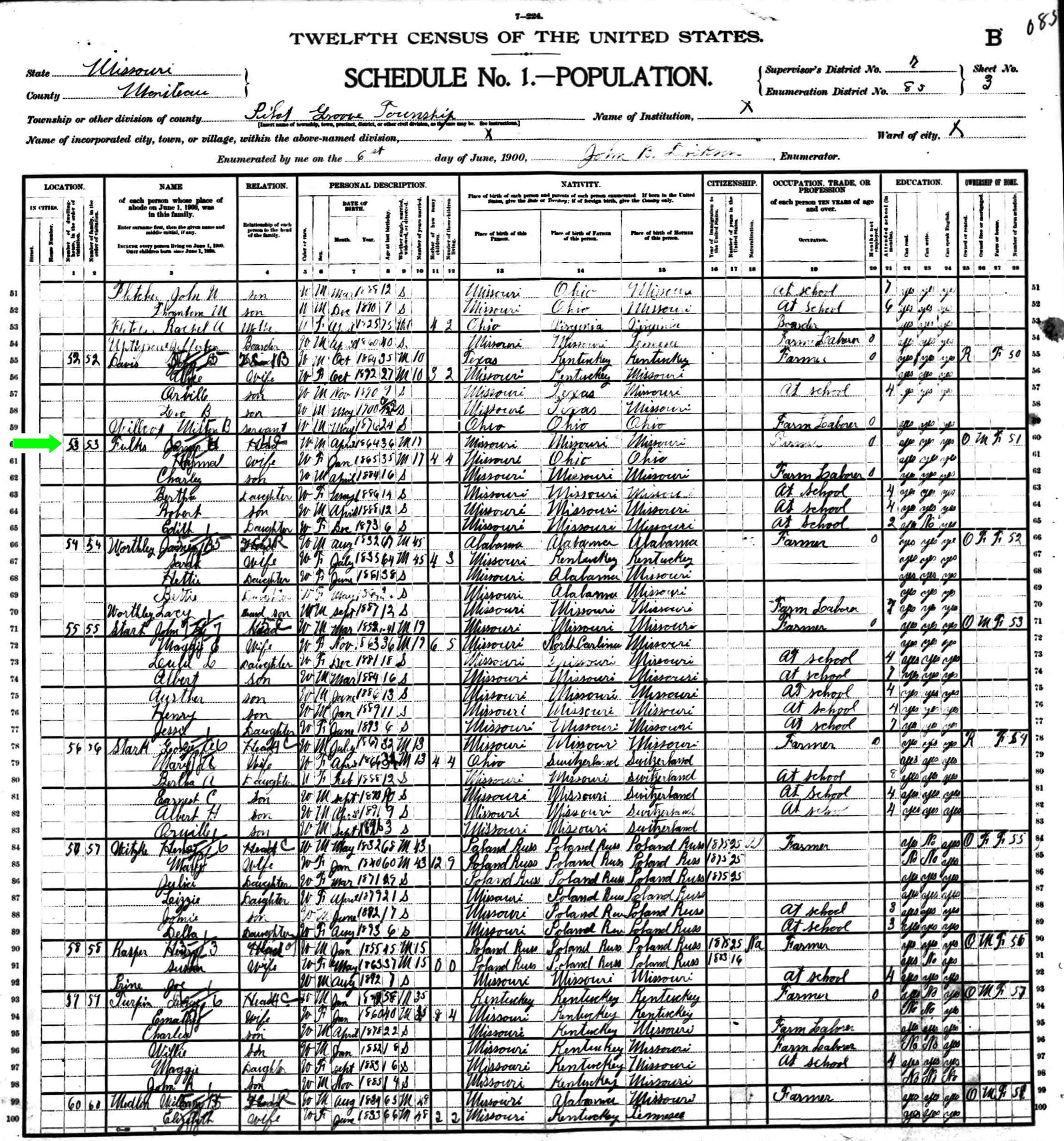 June 1900 in Pilot Grove, Missouri