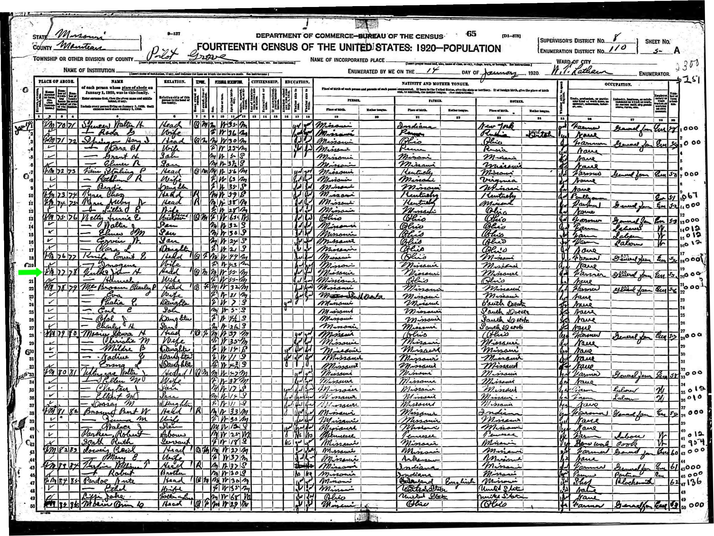 January 1920 in Pilot Grove, Missouri
