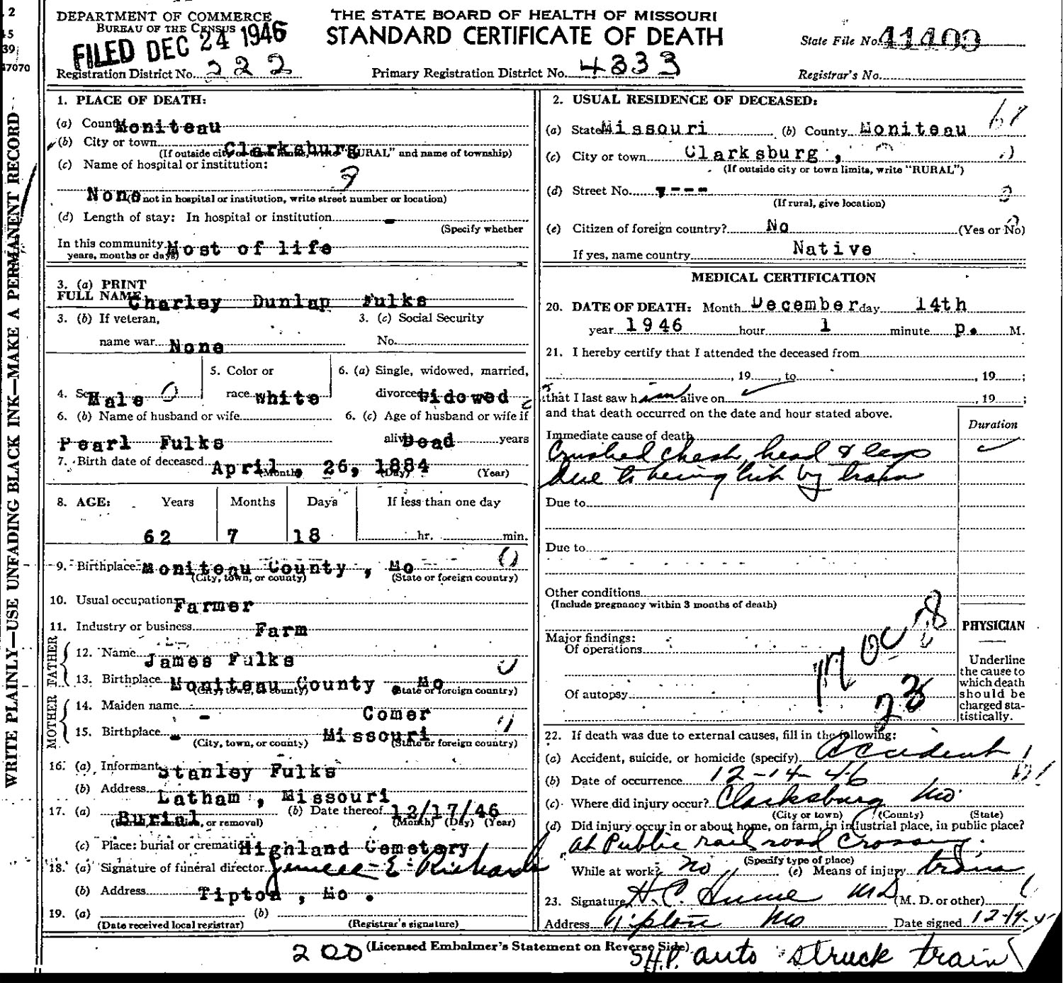 Charley Dunlap Fulks (1884 - 1946)