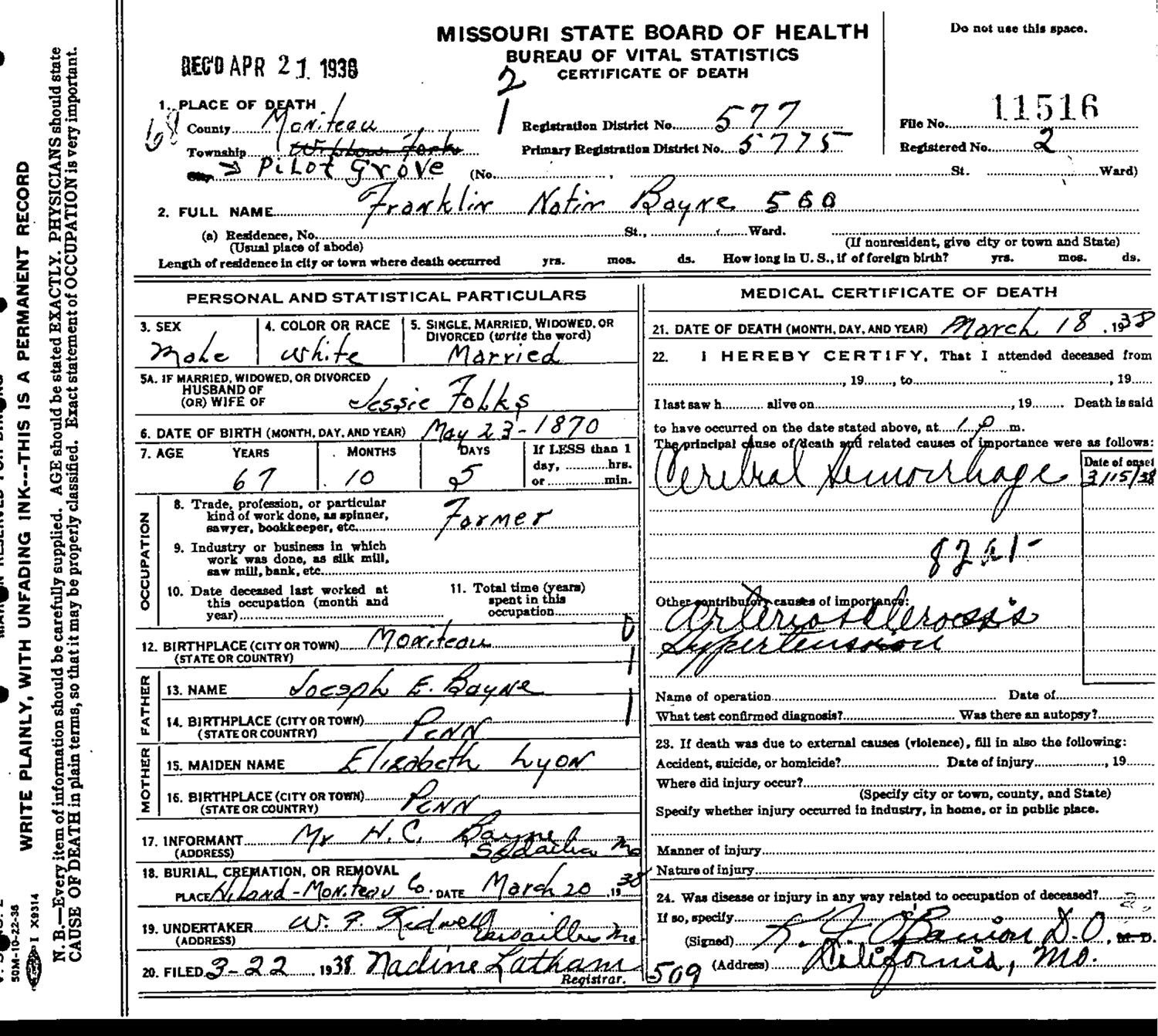 Franklin Nathan Bayne (1870 - 1938)