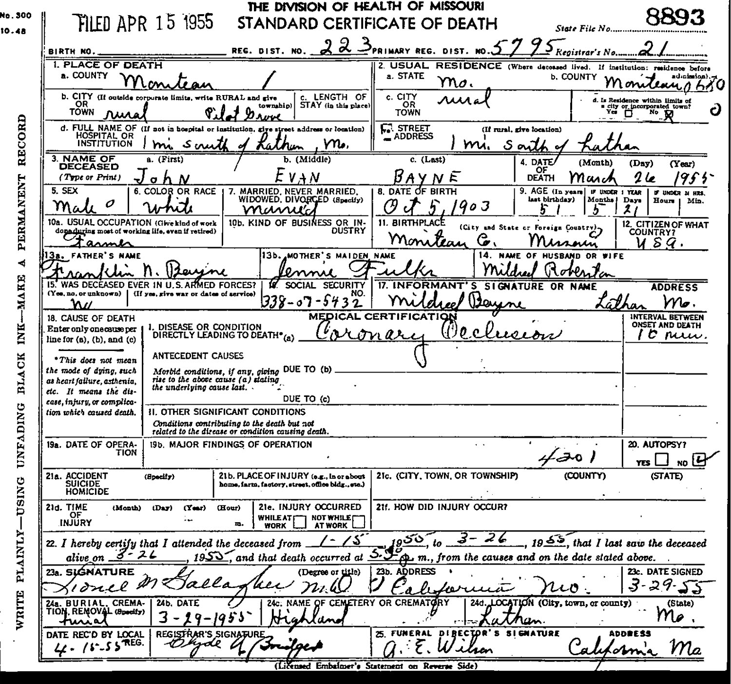 Elmer Harry Bayne (1894 - 1980)