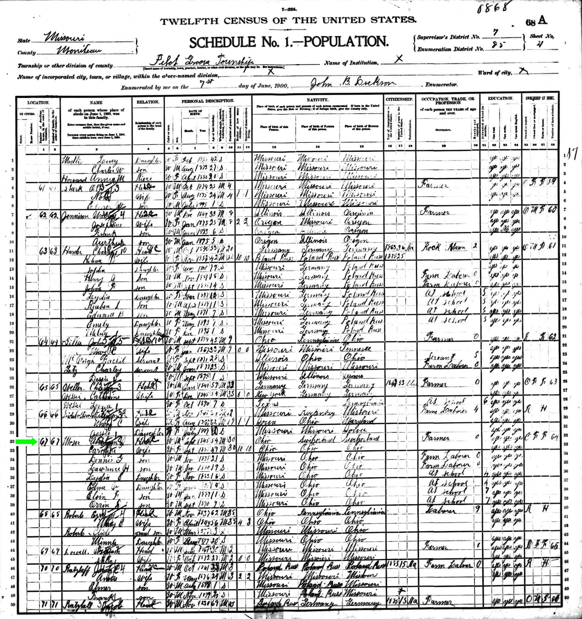 June 1900 in Pilot Grove, Missouri