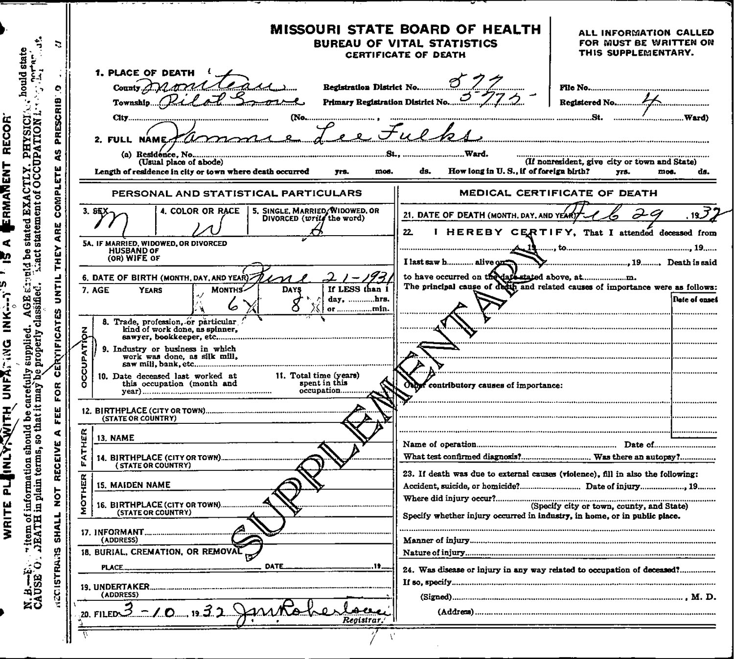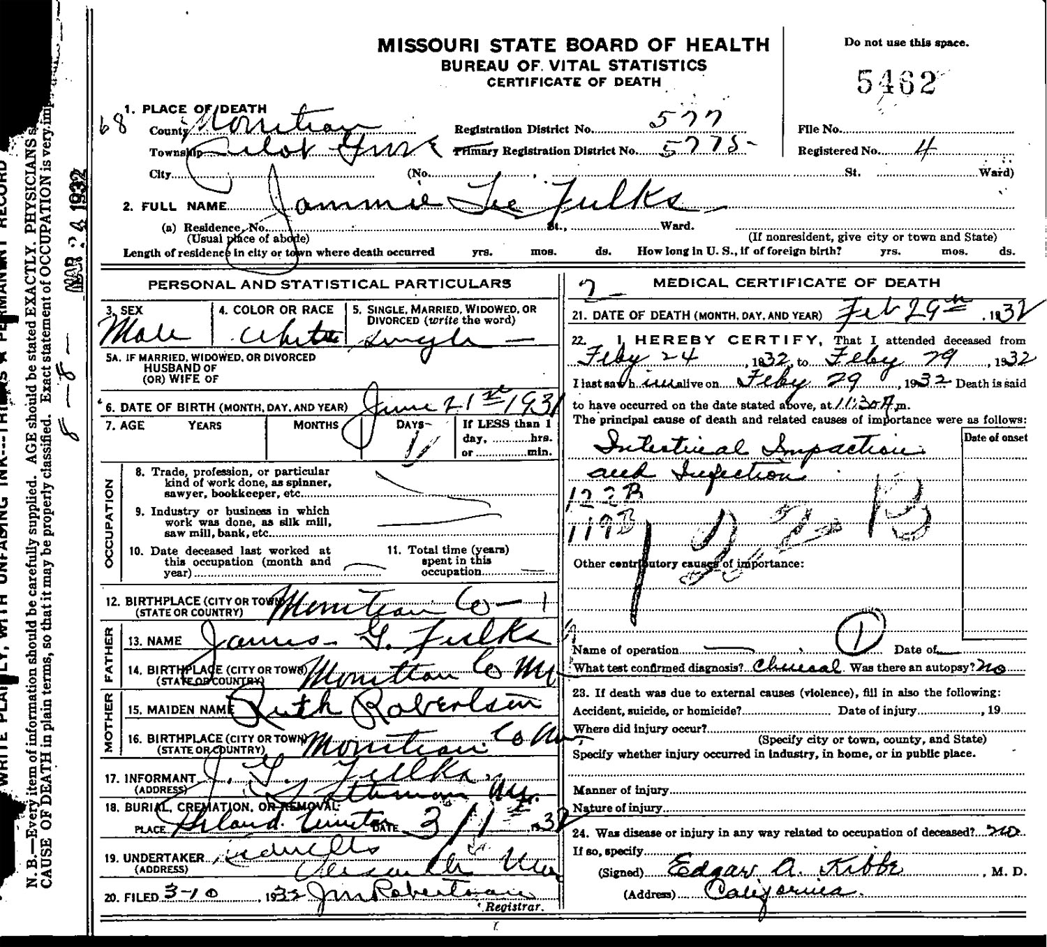 April 07, 1907 in Moniteau Co., Missouri