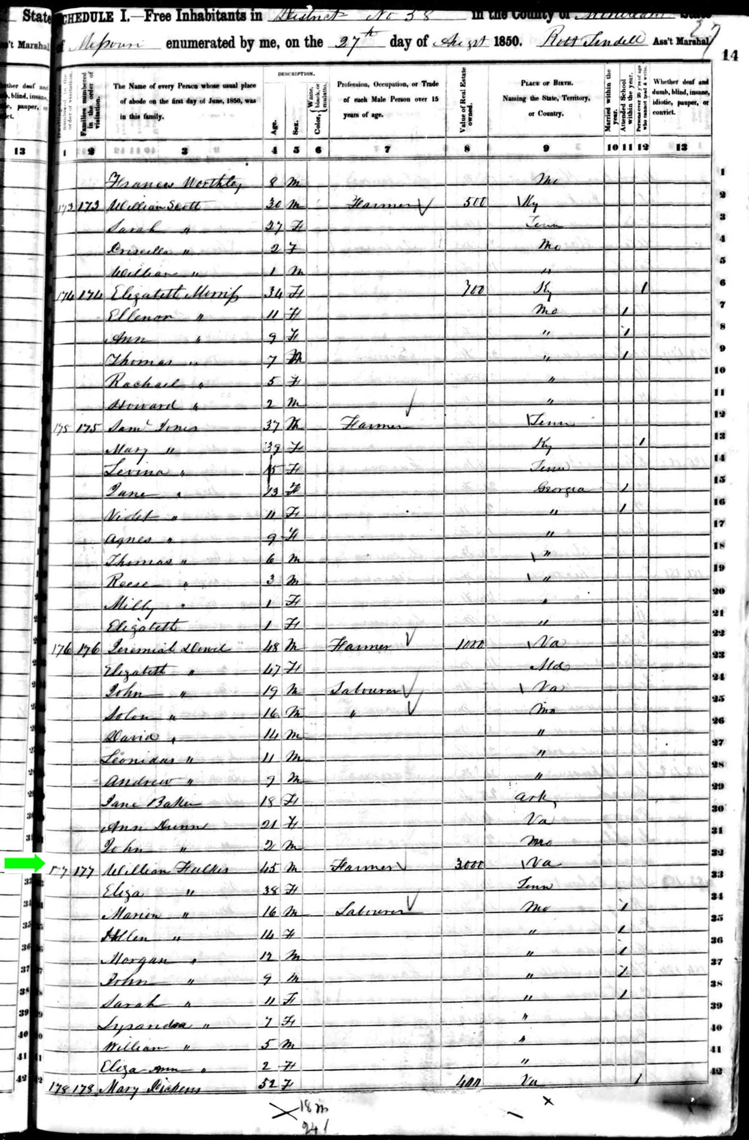 August 1850 in Moniteau Co., Missouri