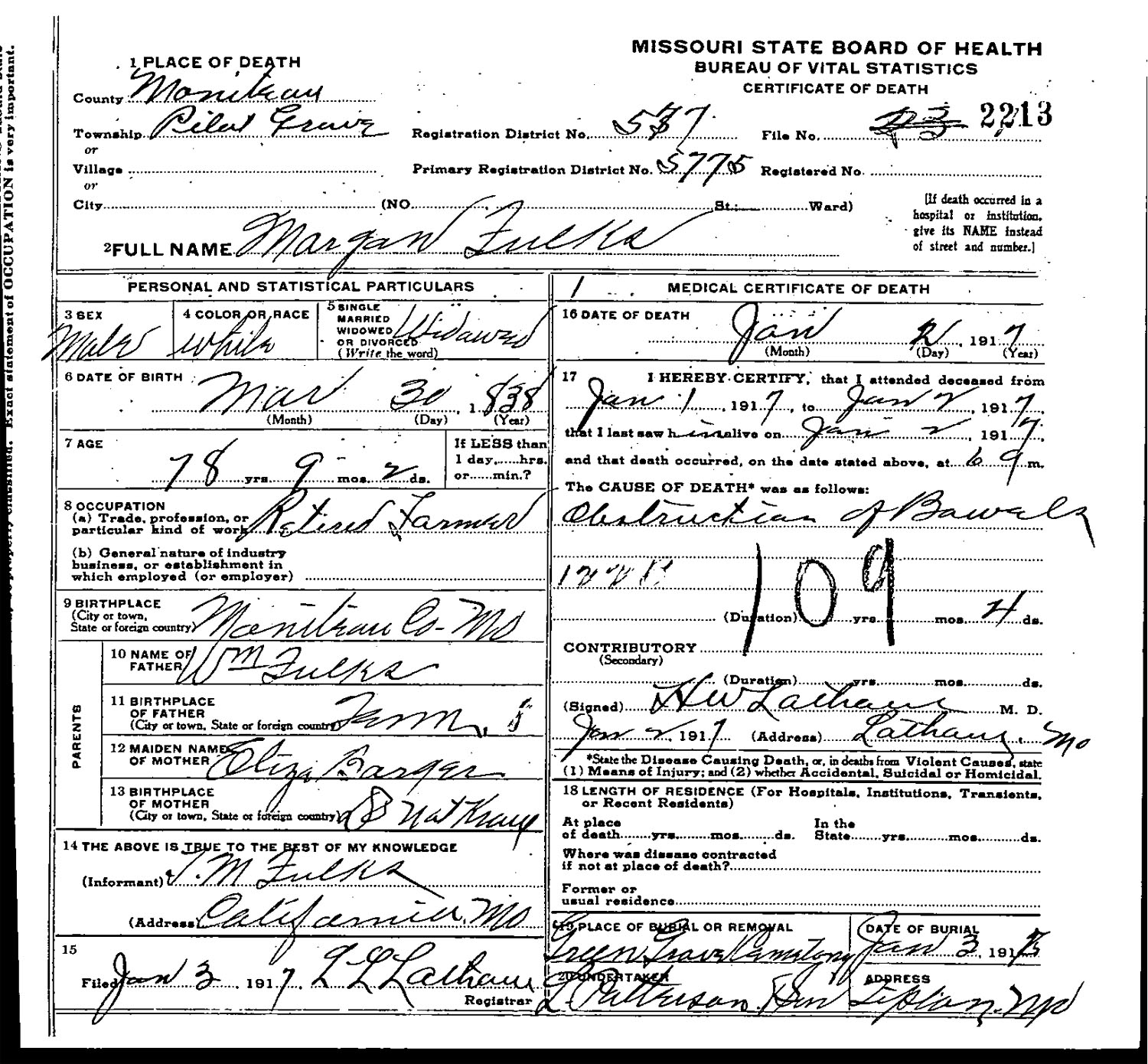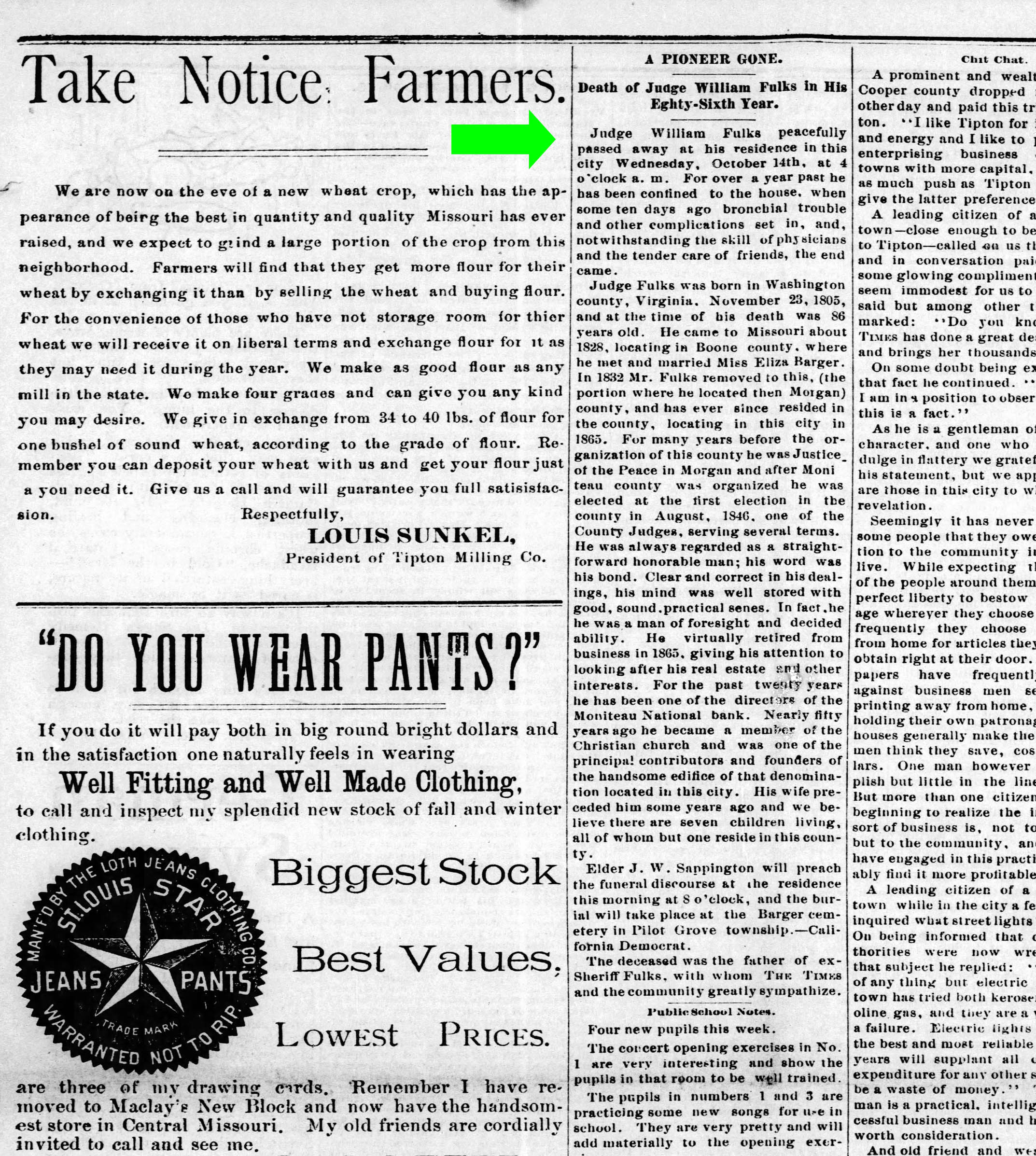 November 03, 1883 in Moniteau Co., Missouri