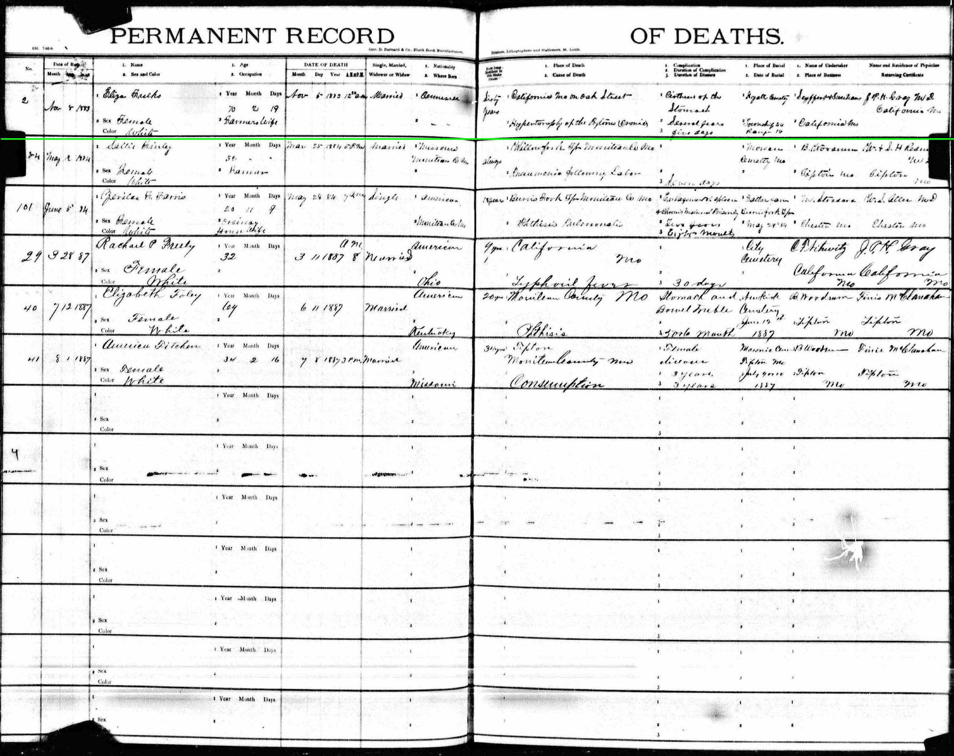 November 1883 in Latham, Missouri; Green Grove Cemetery