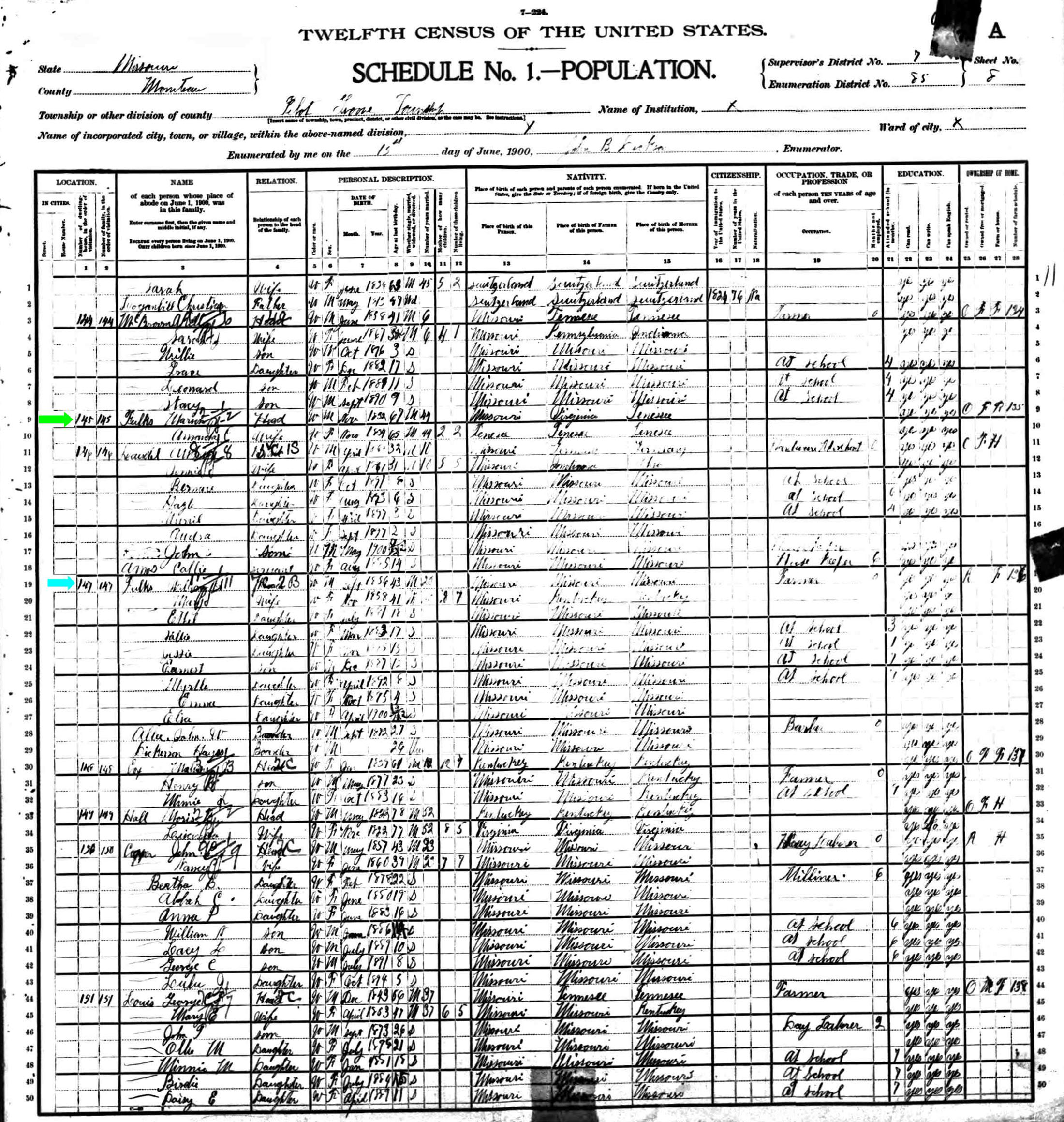 June 1900 in Pilot Grove, Missouri