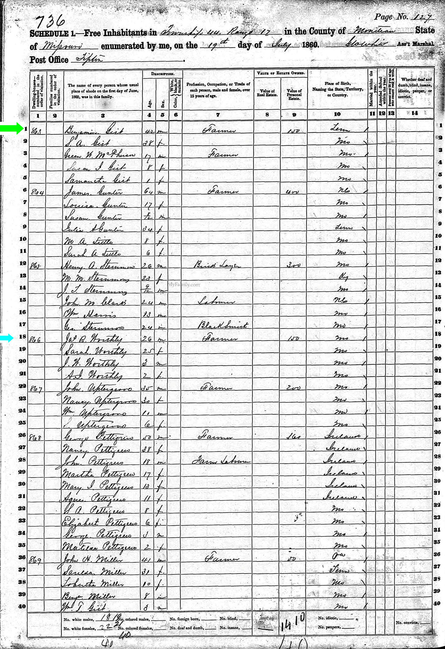 July 1860; Farmer