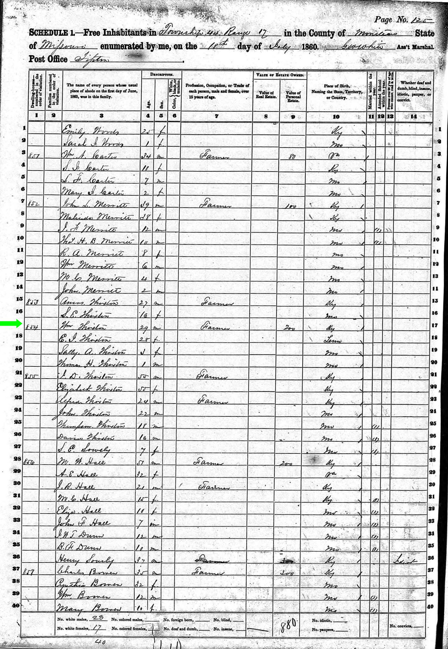 July 1860 in Moniteau Co., Missouri