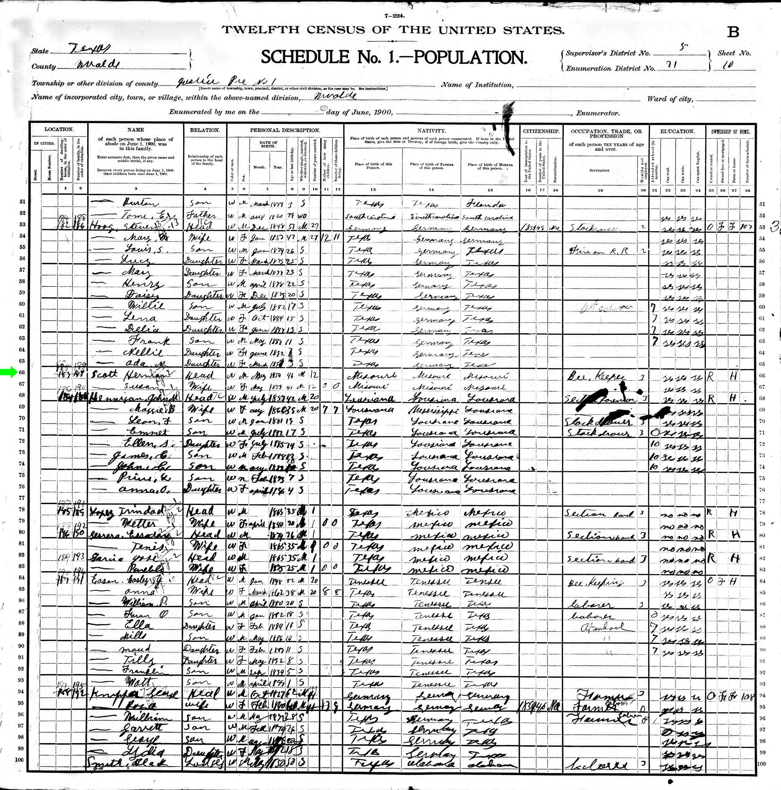 June 1900 in Uvalde Co., Texas