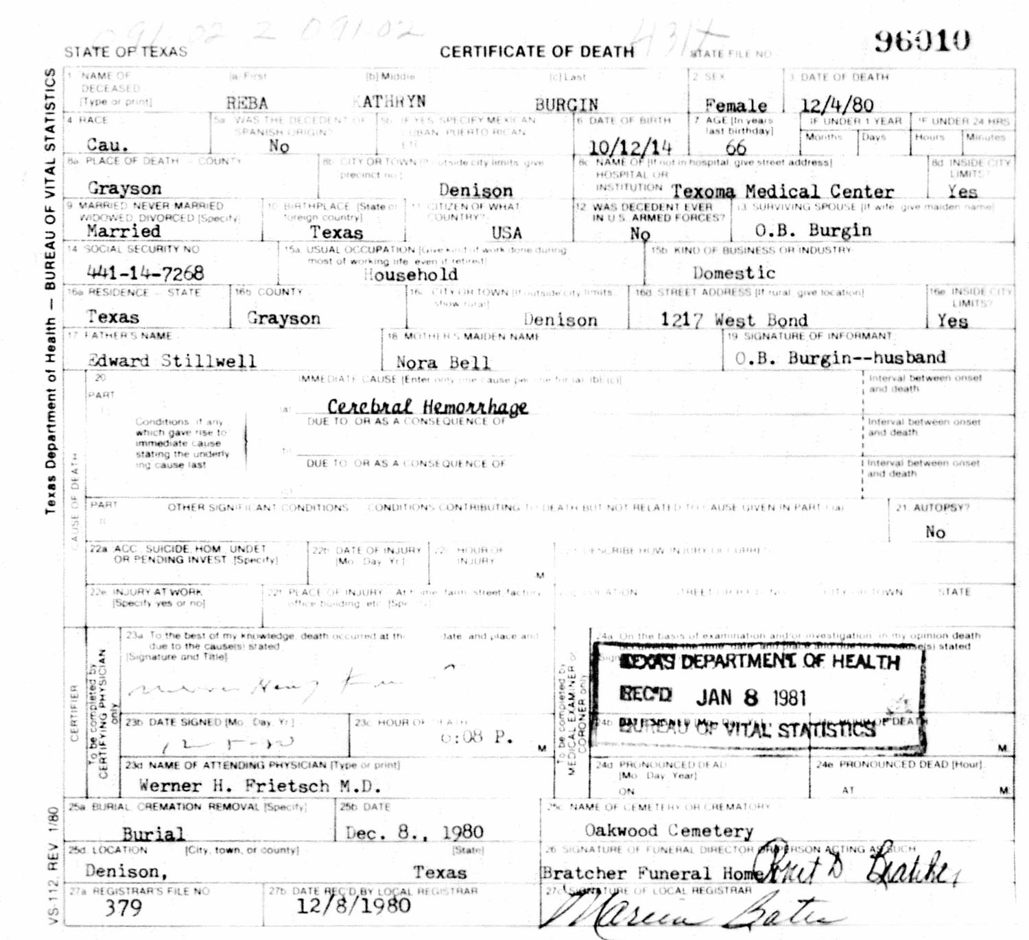 January 1974 in Denison, Texas; 3031 S. Fannin