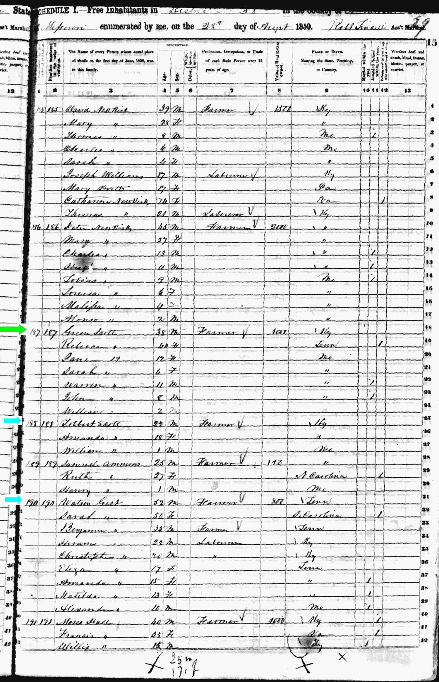 August 1850; Farmer
