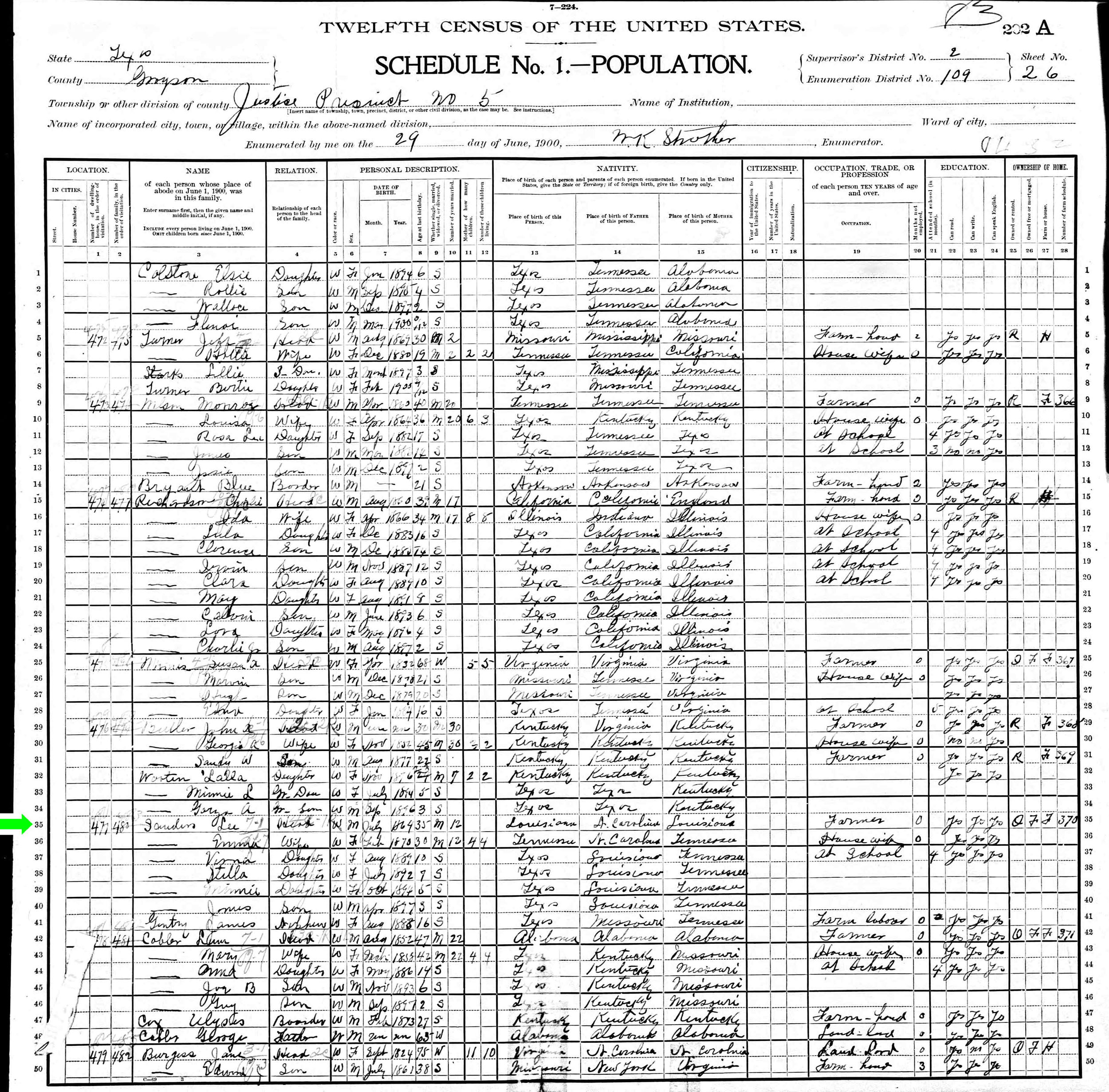 June 1900 in Grayson Co., Texas