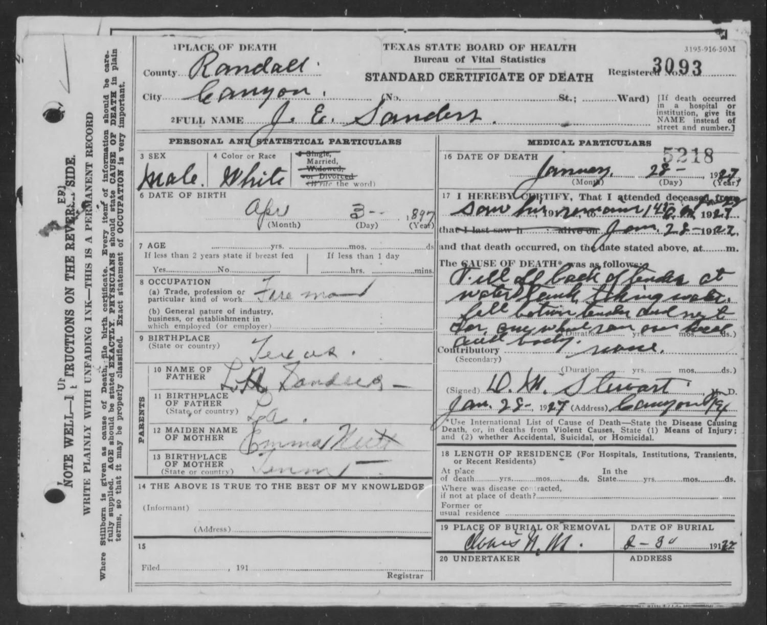 January 1920 in Claud, New Mexico