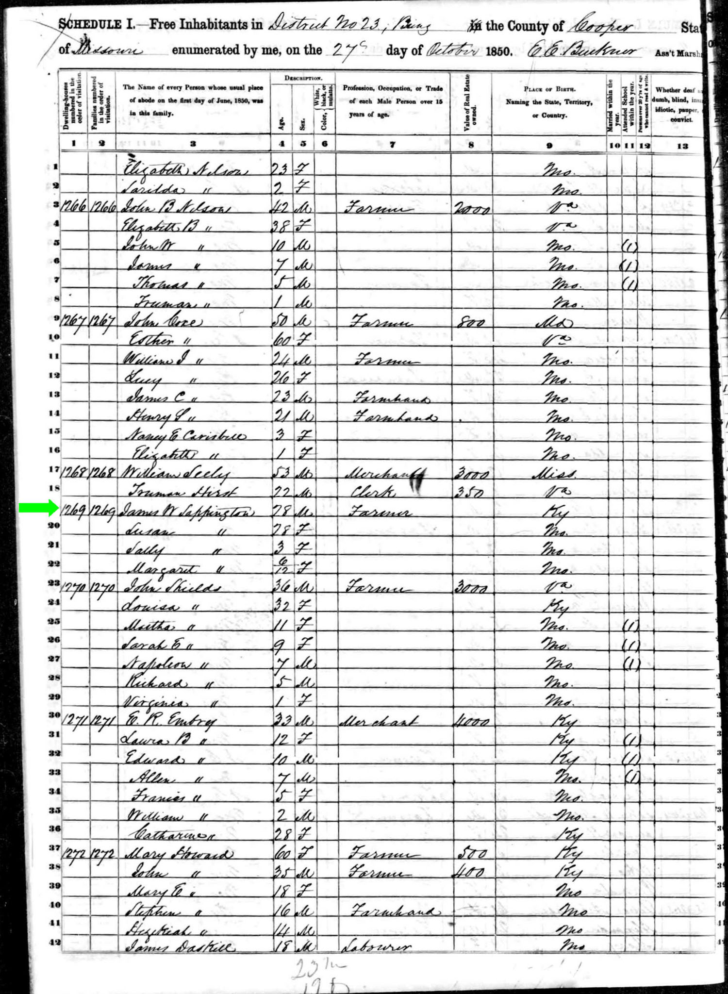 October 1850 in Cooper Co., Missouri