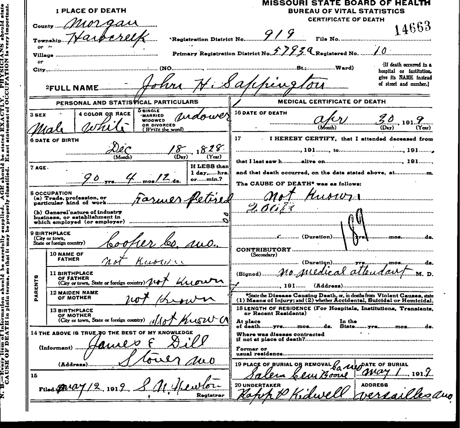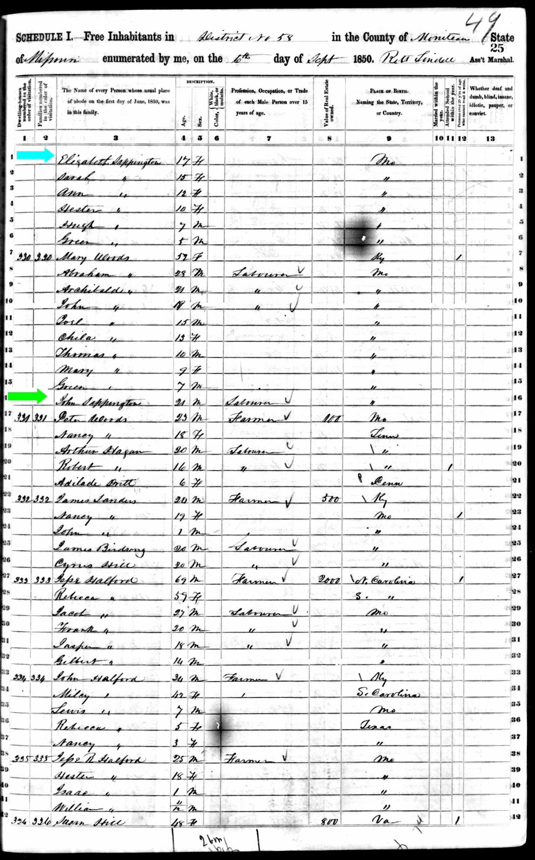 Sepember 1850 in Moniteau Co., Missouri; Living with his brother''s (James) mother in-law