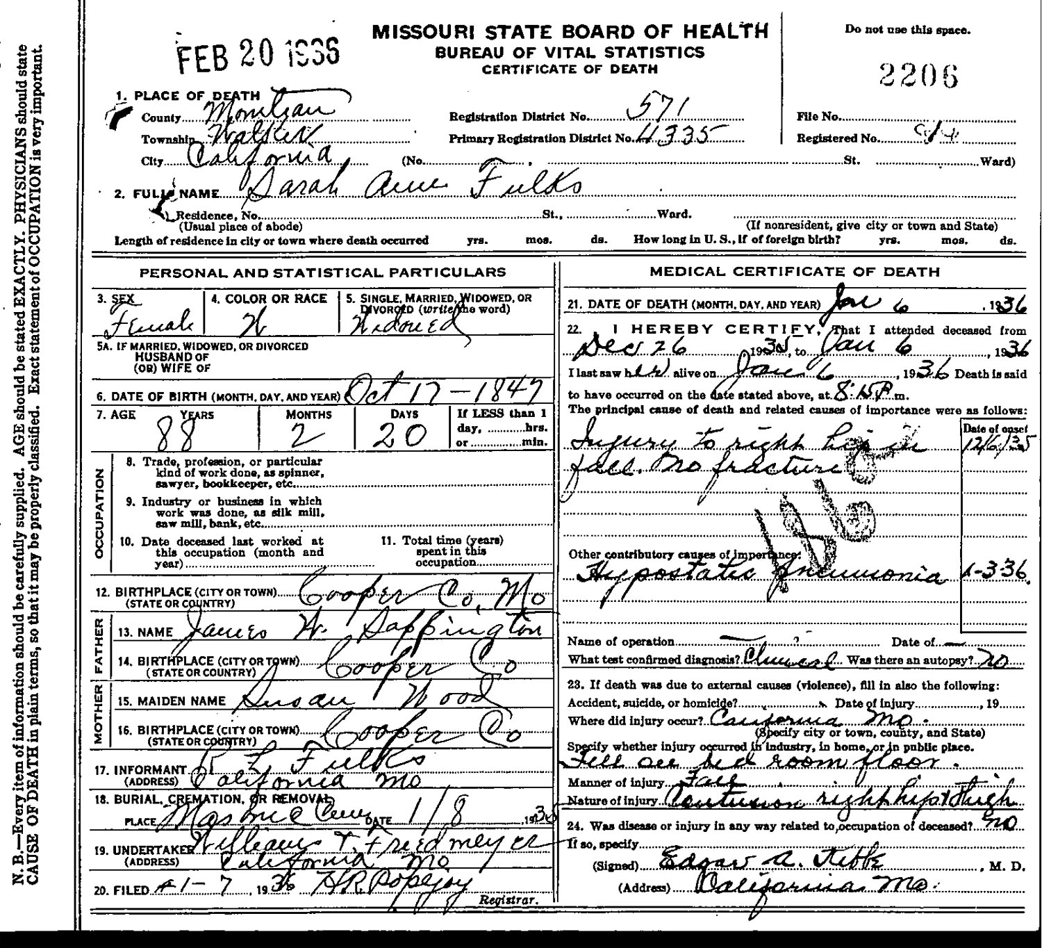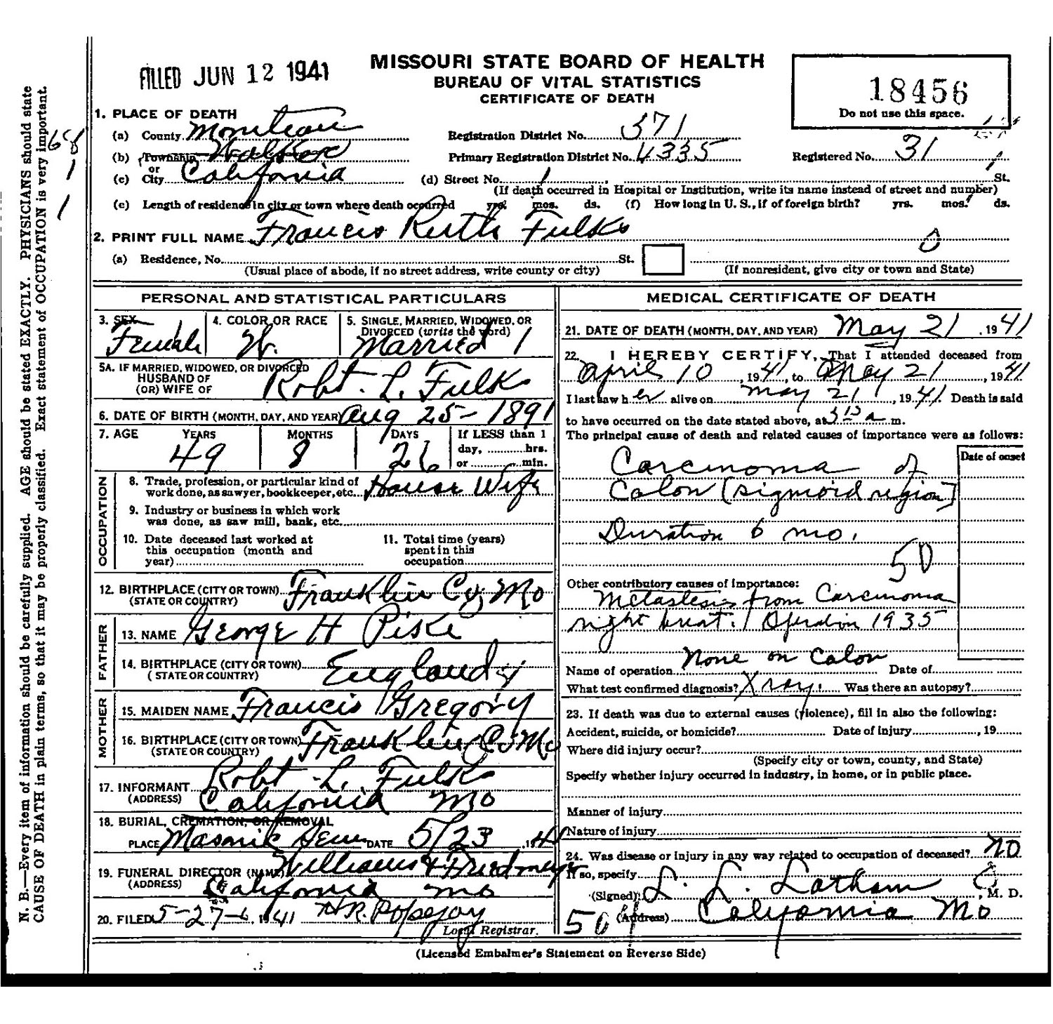 June 18, 1963 in California, Missouri; New Masonic Cemetery