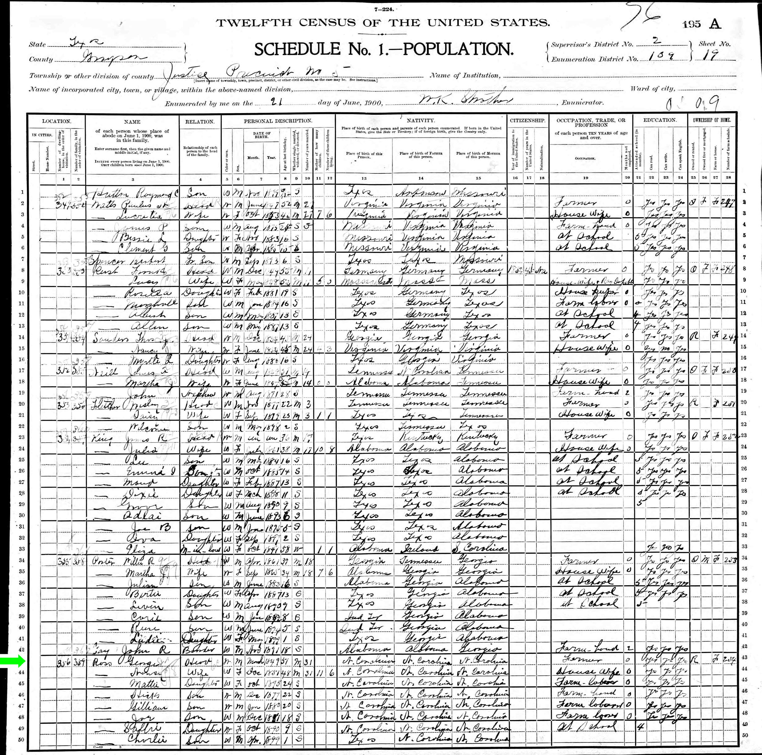 June 1900 in Grayson Co., Texas