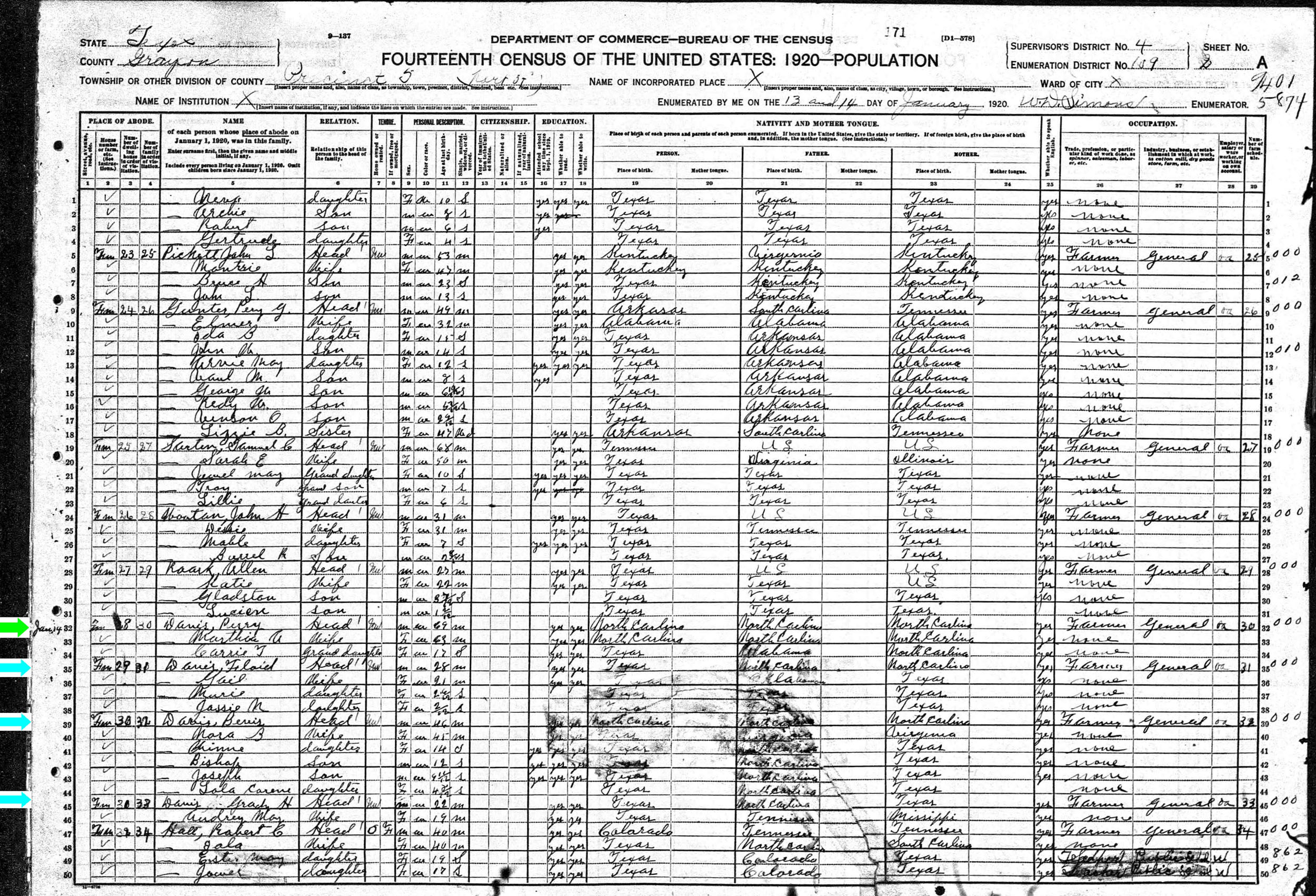 January 1920 in Grayson Co., Texas