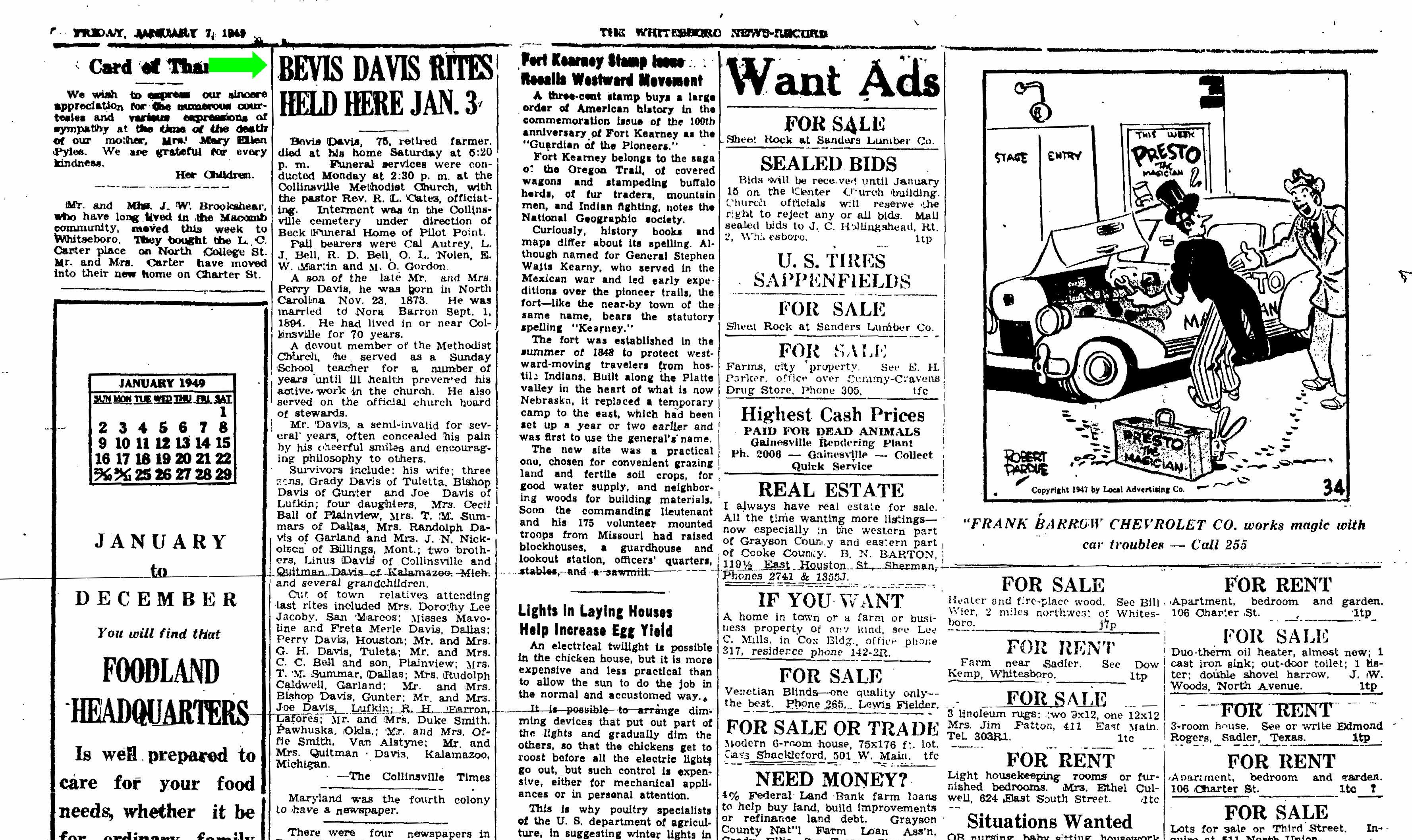 March 31, 1943 in Ethel, Texas; Ethel Cemetery