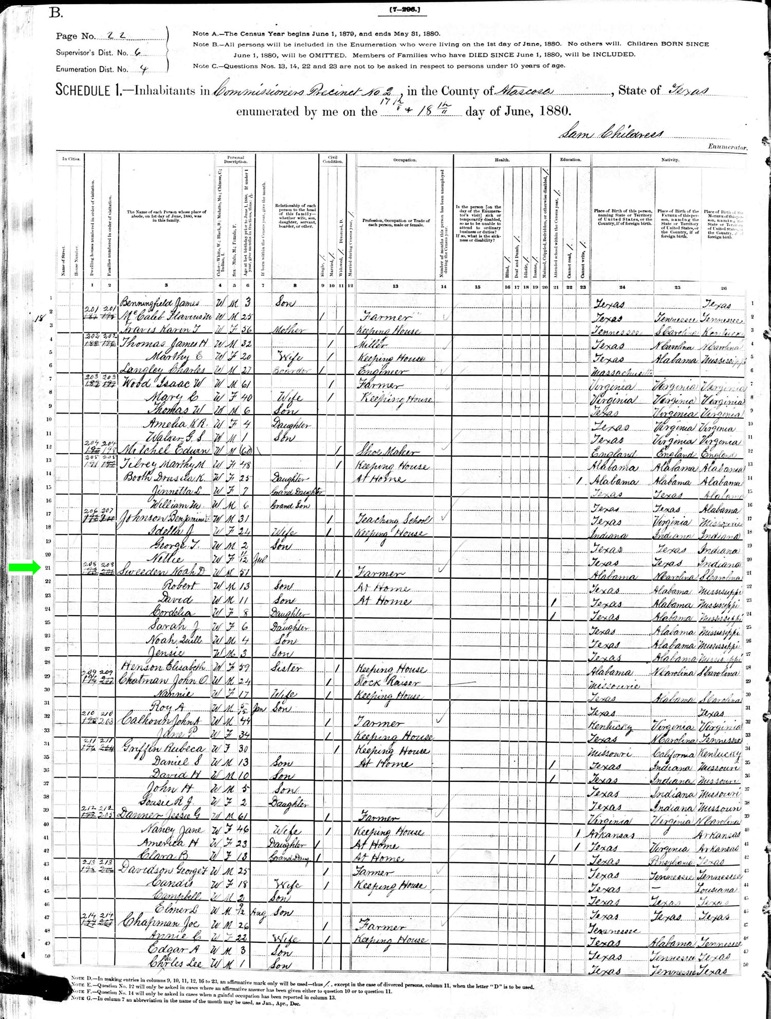 June 1880 in Atascosa Co., Texas